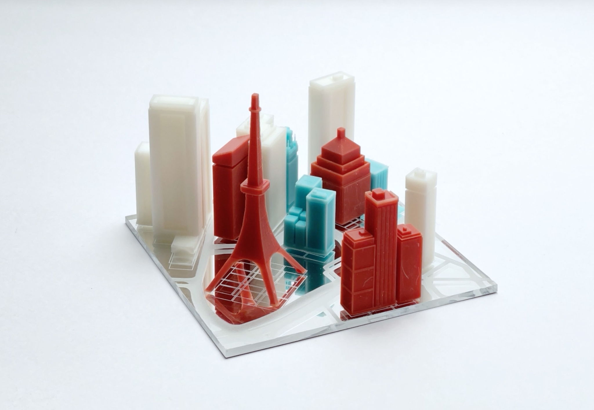 BAIS(AI)は、非中央集権都市を実現するために設置されたシステムです。全市民からそれぞれ送られる都市計画を元に都市運営のシミュレーションを行い、その結果に基づいてBAIS CITYに最適な新たな条例を全市民に提案します。都市計画には、建物を示すカラフルなコマと都市の地図を示すアクリルのボードを使用します。ボード上の地図に示されたエリアに、条例を守りながら建物を配置することで自身の都市計画を作成します。作成した都市計画は、スマートフォンを用いて撮影し、メッセージアプリを通じてBAISに送ります。