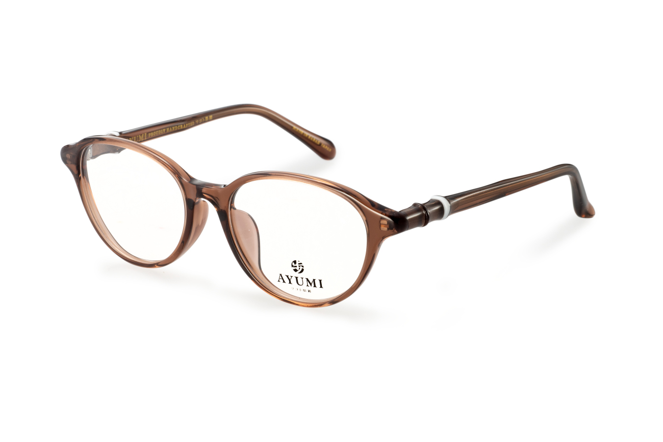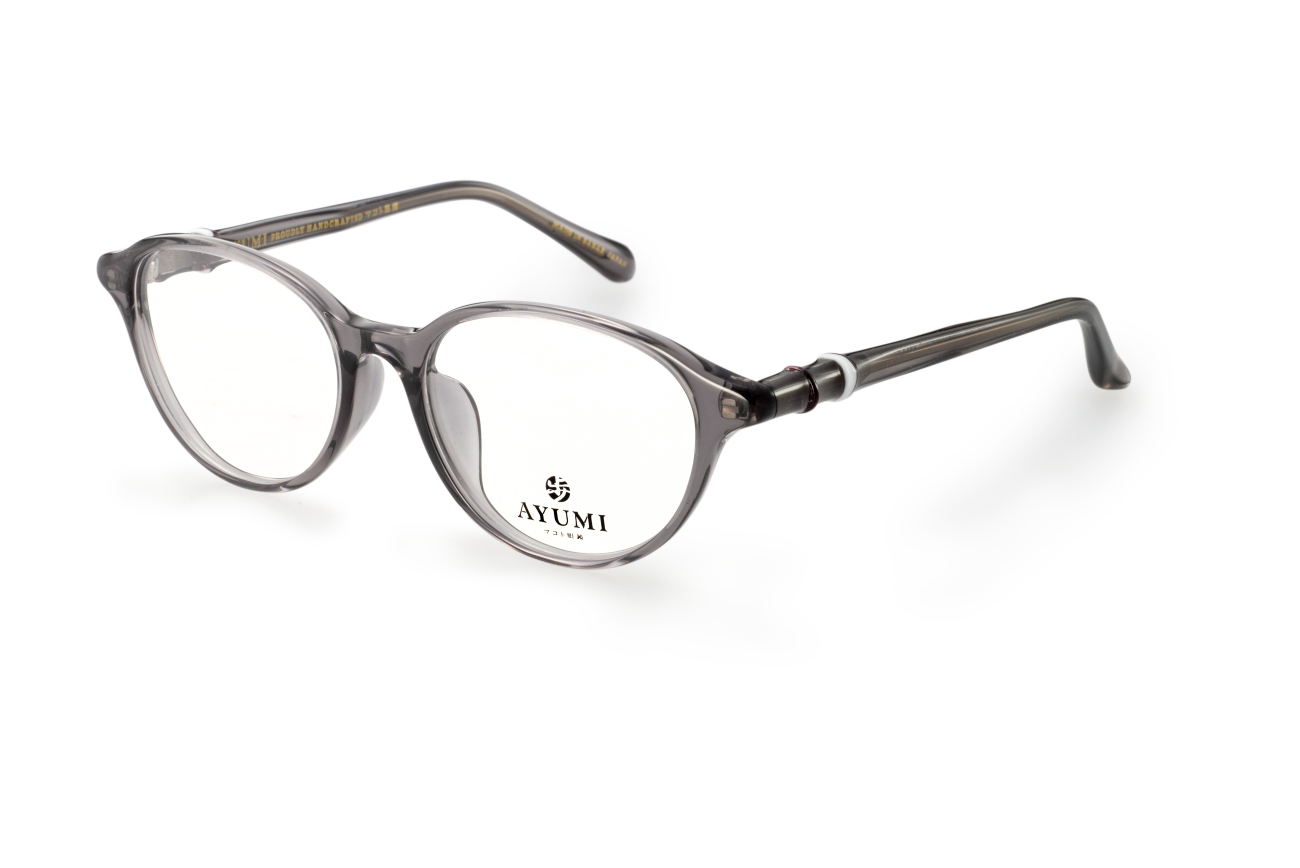 (株)マコト眼鏡「歩」(AYUMI)の20周年を記念したモデル。サイドのリング状の小さなパーツを一つ一つ手作業で付けた逸品。