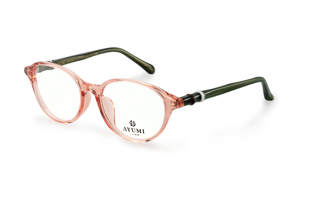 A model commemorating the 20th anniversary of Makoto Optical Co,LTD. "Ayumi" (AYUMI). A gem with small ring-shaped parts on the side attached one by one by hand.