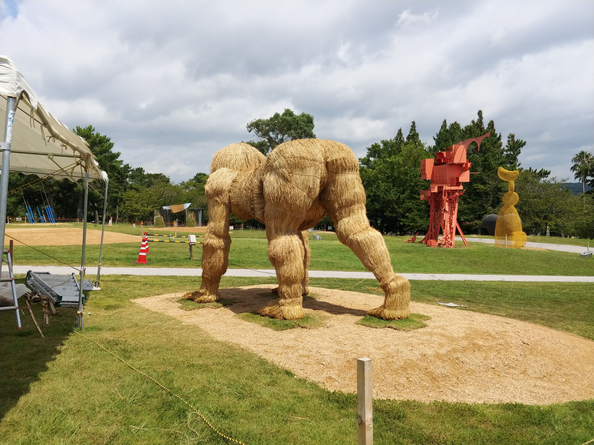 この彫刻は、感染症を体験した世界に「共生して生きること」の意味を強く暗示する。