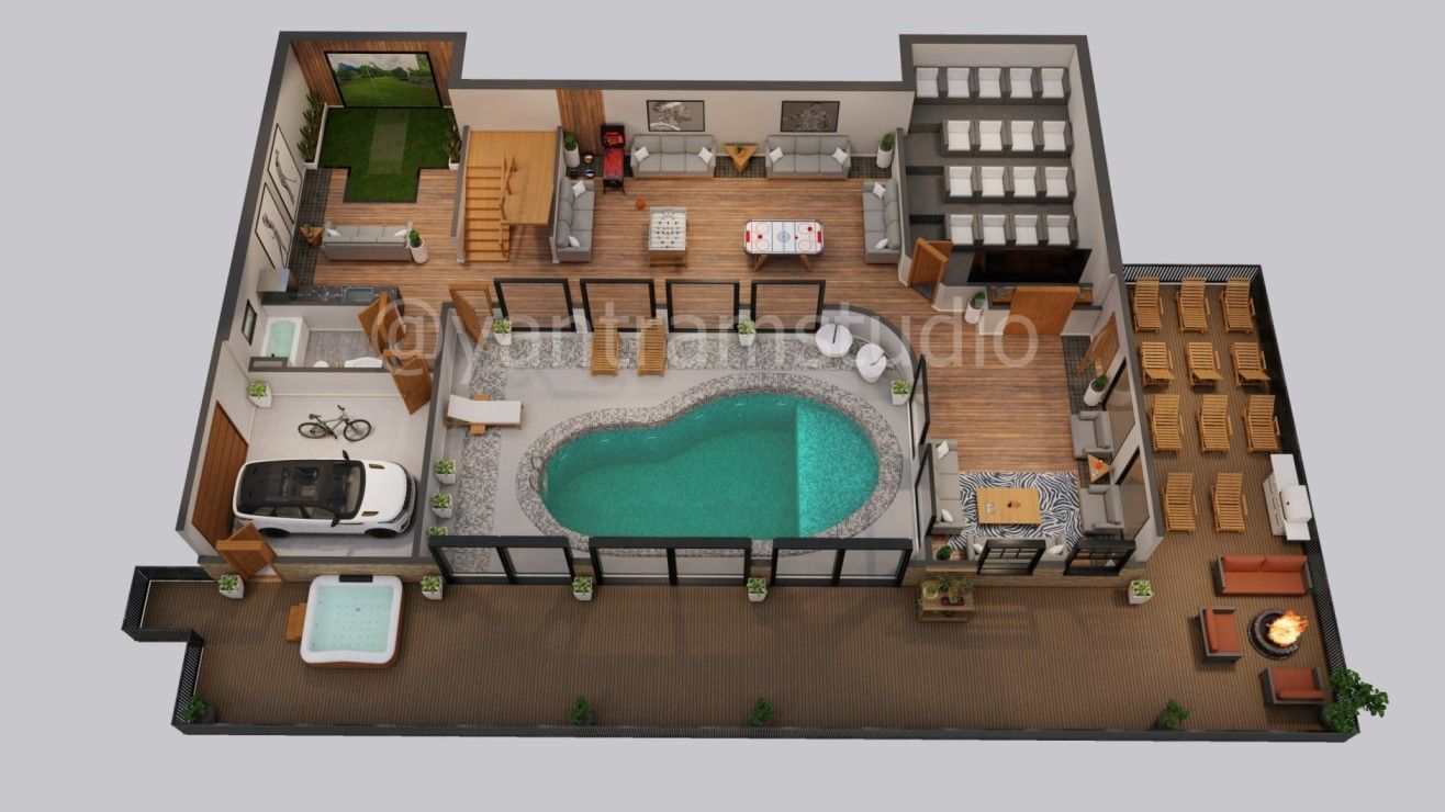 3D Floor Plan Creator at Yantram Architectural Rendering Studio Creates A 3d Floor Plan For Multi Family House with all Amenities inside. In Designing Time Main Challenge Was The Design of A House Suitable For The Miami. This Floor Plan Comes out With This All Challenges.