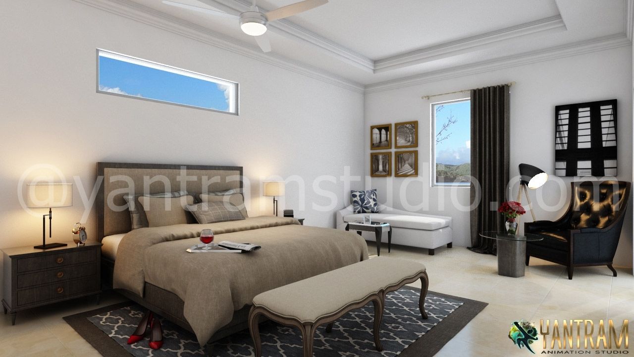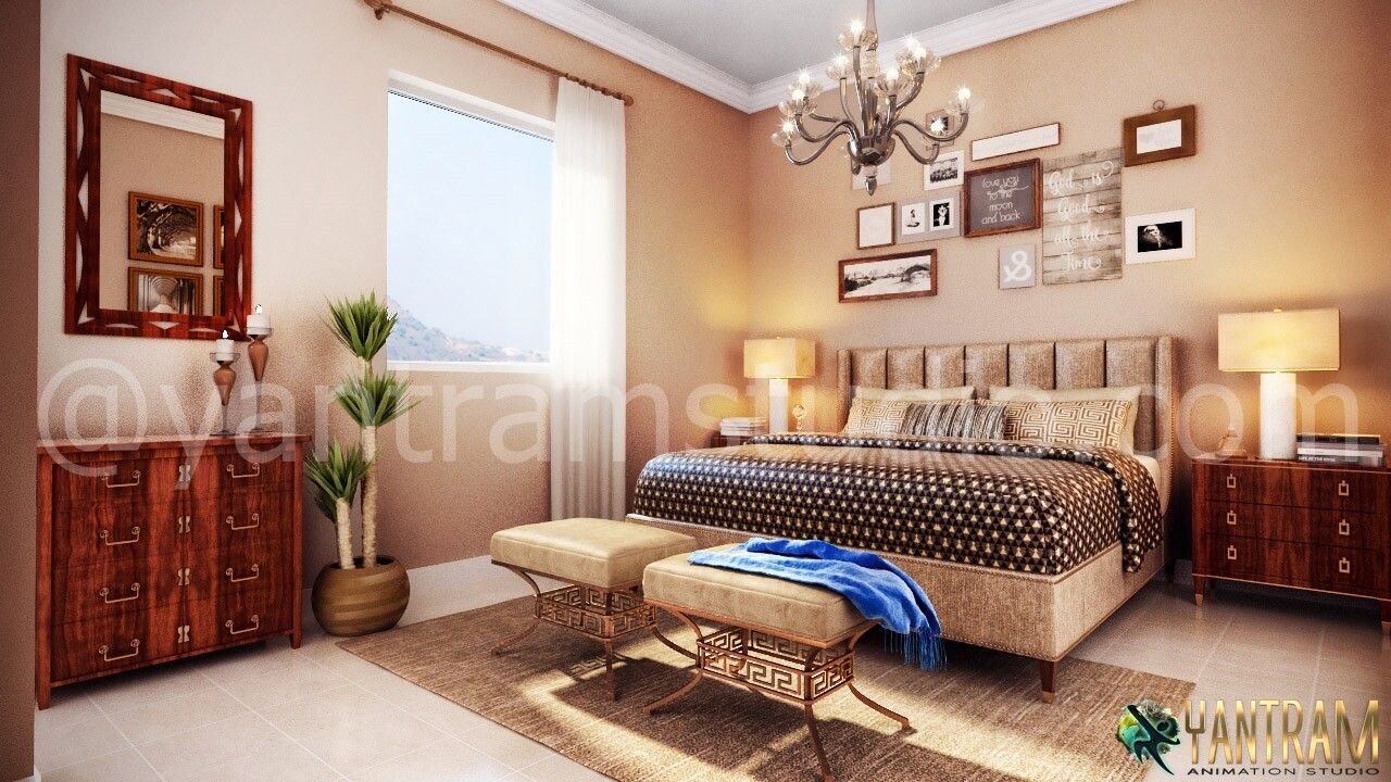 Architectural Interior Rendering of classic bedroom in Denton, Texas by Yantram 3D Architectural Rendering Studio