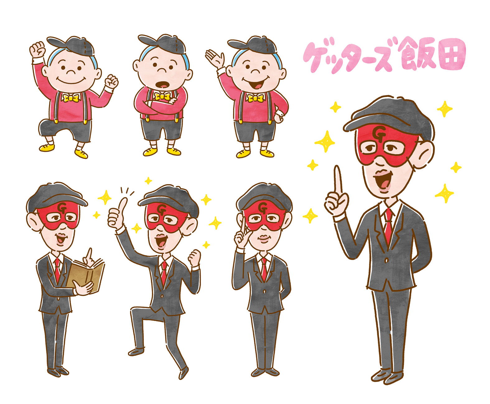 ゲッターズ飯田さん似顔絵キャラクターポーズバリエーションをシンプルでコミカルに。