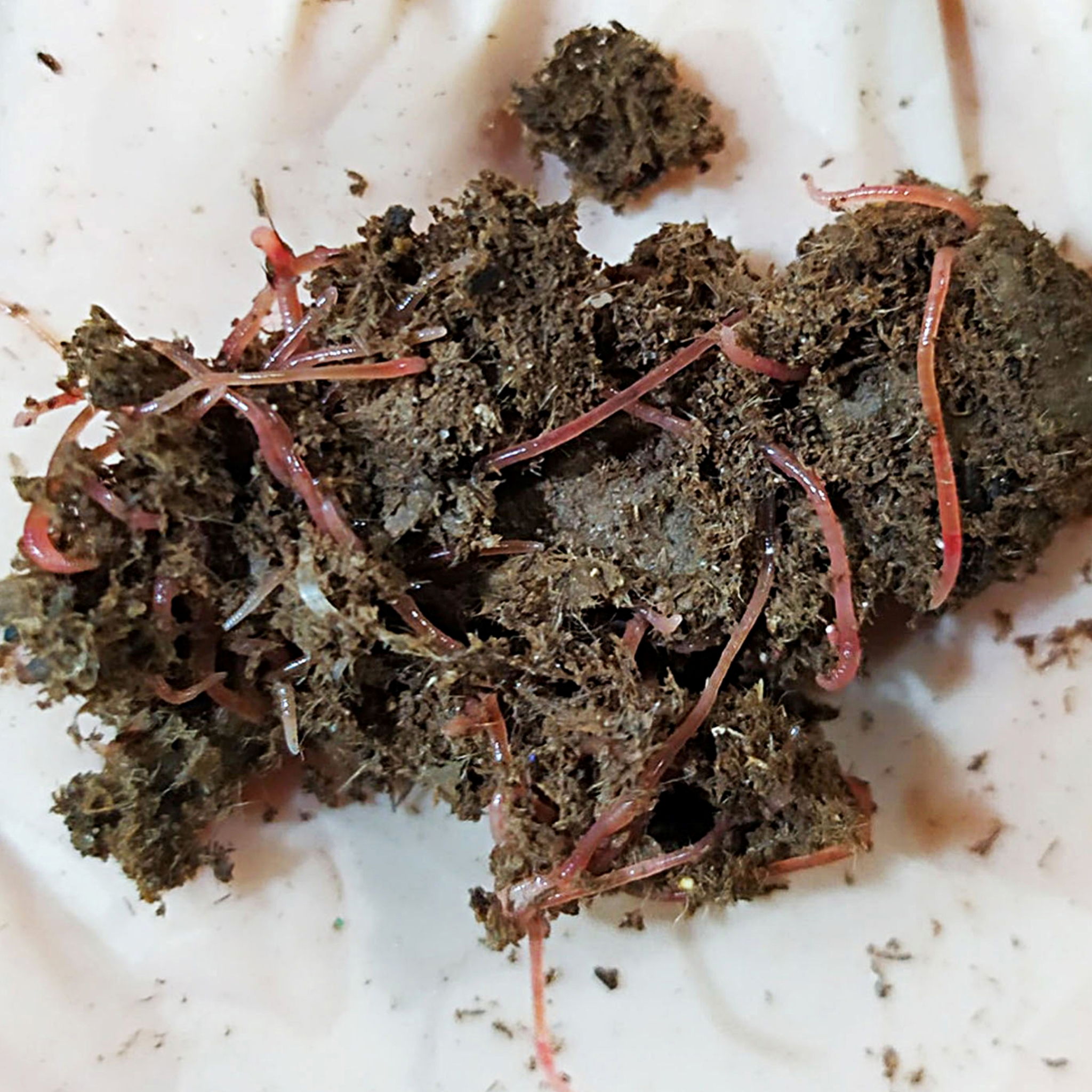 Feeding earthworms with degrading paper waste.