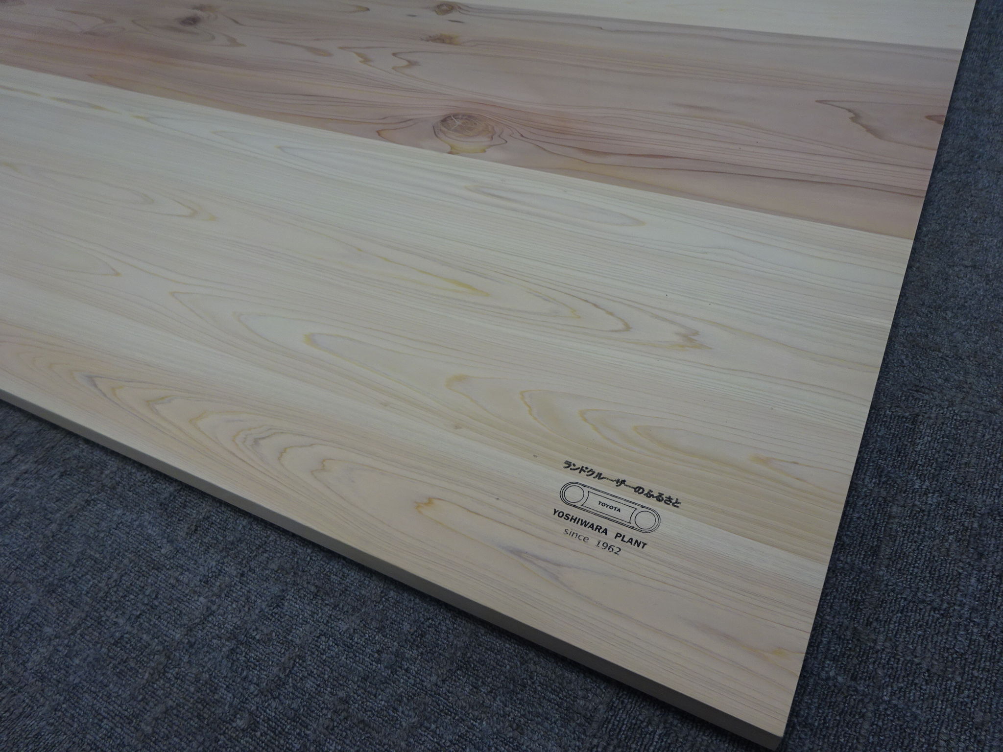 その天板は、「あいち認証材」という愛知県の森から産出されるヒノキと組み合わせ、森林保護とCO2の固定という価値を持って、工場の事務所、ロビーにて使用されている。