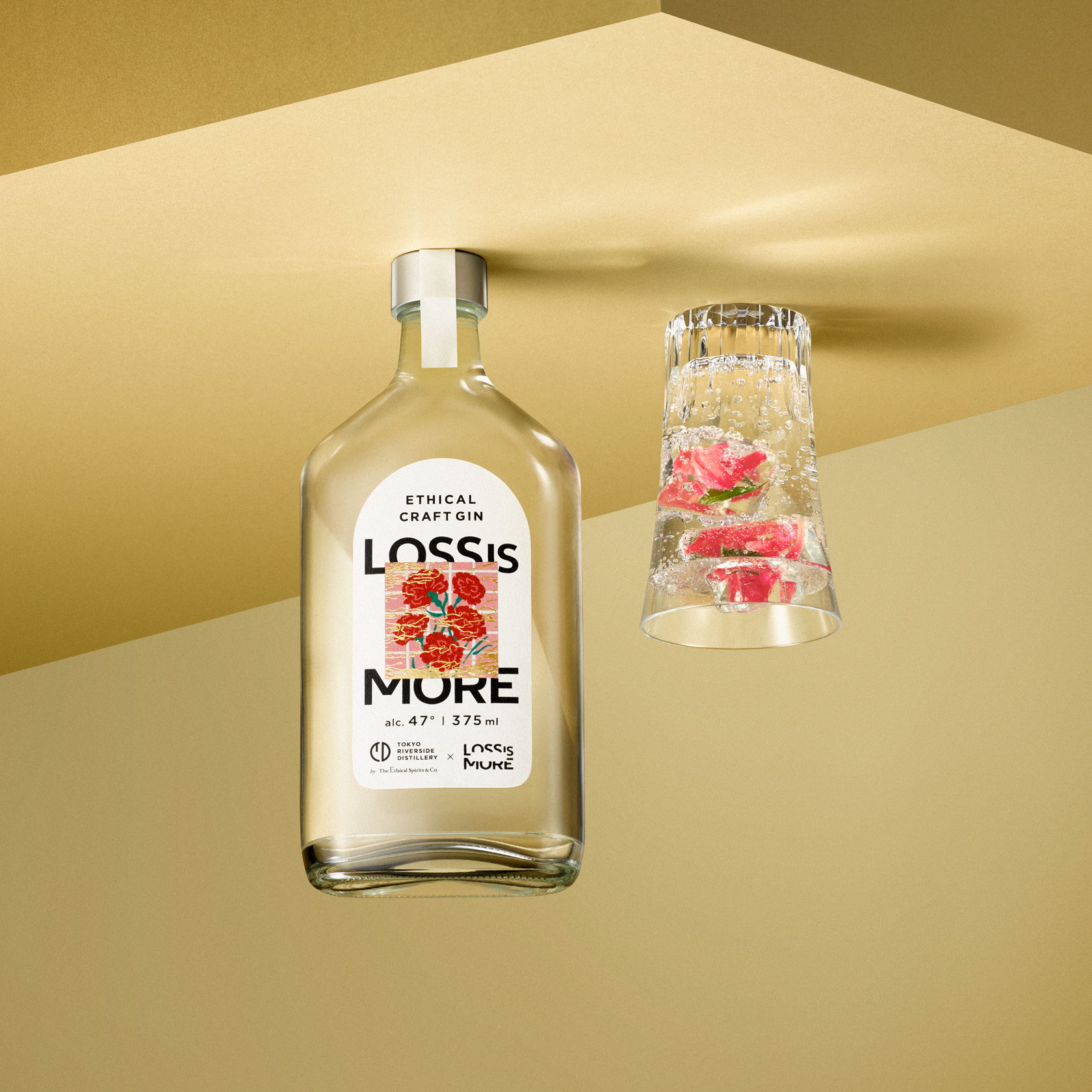 We recognize that everyday items labeled as "waste" due to arbitrary distinctions by people still hold inherent value. Through LOSS IS MORE GIN, we communicate the idea that discarded flowers also possess value equal to fresh flowers, thus contributing to the waste issue in the fresh flower industry.