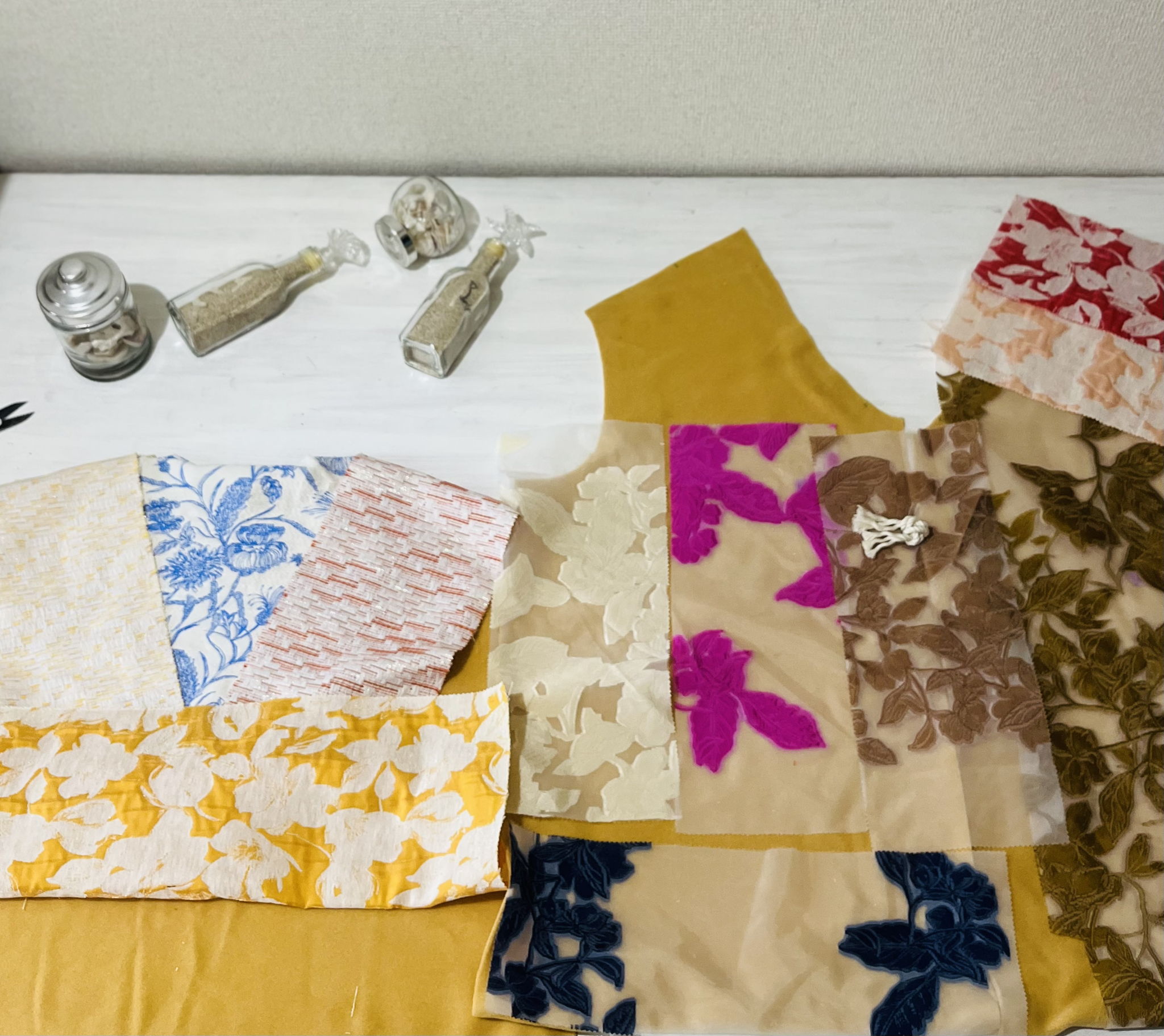 色形を土台のリサイクル♻️ポリのフェルトをキャンバスにあーでもこーでもないとスクラップしました。