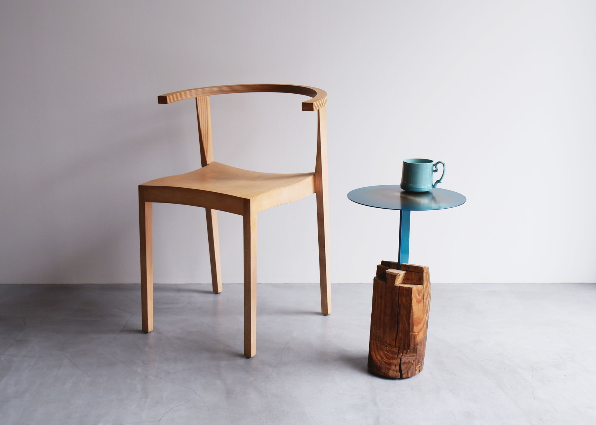 The first stage of the project begun at a vast vacant lot facing the "Nonki-dori Shopping Street" in Shinagawa-ku Ward. The site was before used as a public bathhouse that was once a favorite of local residents, so we set up an exhibition to trace memories of the past by displaying some street furniture made from scrap wood for a limited period of time to communicate the SAIKAI project to local residents and passersby. Many people, young and old, gathered on the shuttered shopping street, and the event provided an opportunity for dialogue about memories and the appeal of discarded materials. On the other hand, in order to directly express the attractive points of such waste wood, it was necessary to enhance the design and innovation of the product, so we started developing a product using the waste wood (tips of beams) generated during the production of street furniture, and this side table was born. -