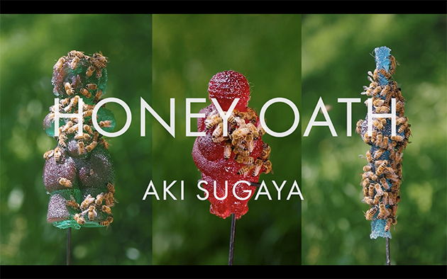 "HONEY OATH" is an artwork created by Aki Sugaya, who herself keeps bees for a long period of time and worked with them.