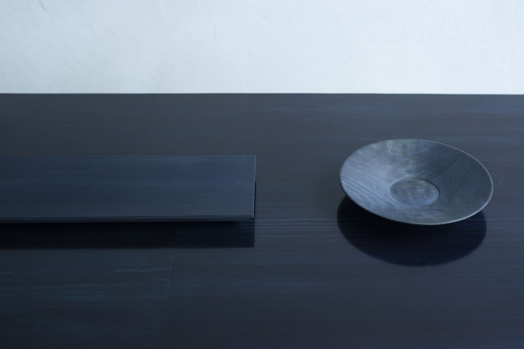 Ao.(青)の由来でもあるジャパンブルーとも呼ばれる「藍色」に染め上げられた木肌は、木本来の木目の美しさを際立たせ素材として独特の存在感を纏っています。