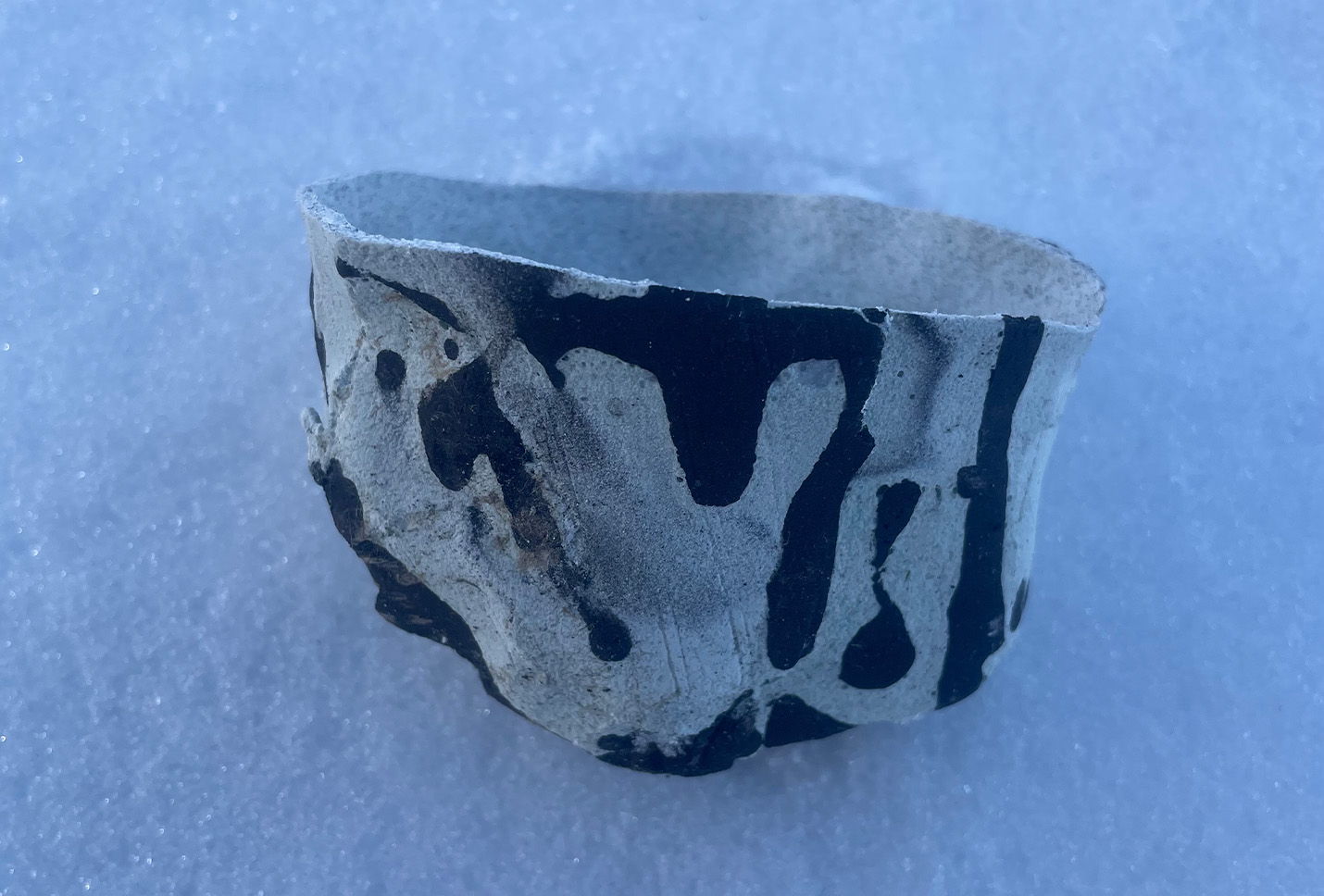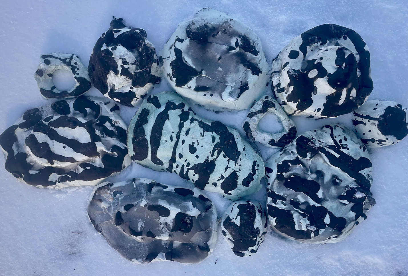 Glacial Bio-Pottery is a material and process driven exploration of reformulating the ceramic slip casting process for the nomadic creative to make the ceramic practice more accessible and utilize local waste stream systems. The dish set Glacial Bio-Pottery explores Iceland’s unlikely resources for form, mold, and casting materials to create bio-based dishes inspired by Iceland’s ash covered glaciers. Bio-Pottery takes advantage of local waste stream systems to divert these valuable resources into a circular creative process. The “three” step process of the Glacial Bio-Pottery dish set is of form, mold, and casting, where each step utilizes different waste streams in Iceland; waste wool for form development, paper waste for mold making, and food waste for slip casting. Each step has the ability to be recycled in the Bio-Pottery process and at the end of its usability return to the soil through composting. The process of Bio-Pottery evokes an intimate and transparent connection with waste materials that can be adapted to anywhere. Bio-Pottery encourages creatives to engage with their community for material possibilities of reformulating ceramic slip casting. By involving one’s community while researching local resources it opens up meaningful conversations of waste, recycling, upcycling, and collaborations with unlikely industries. Bio-Pottery can be practiced in a home studio allowing greater accessibility to the ceramic practice and use for other creative disciplines.