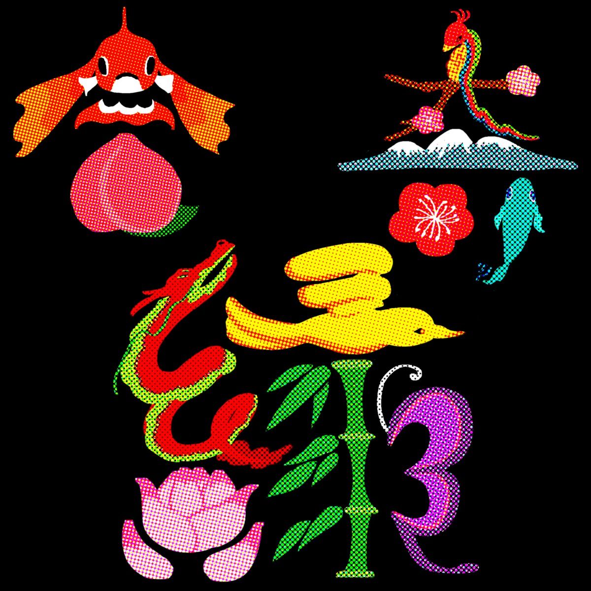 縁起の良いモチーフを組み合わせて描く中国の『花文字』から着想を得ました。