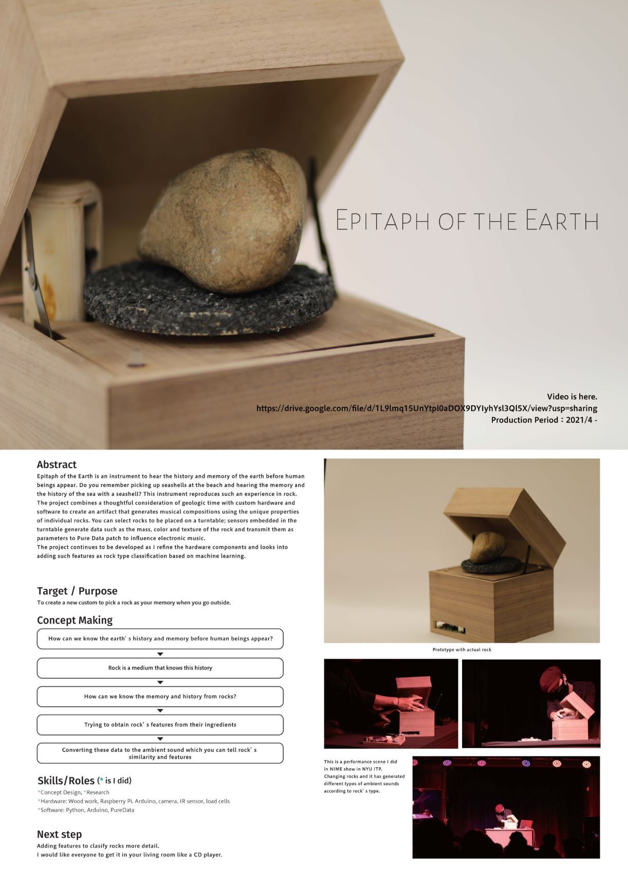 Epitaph of the Earthは石を再生(play/rebirth)する卓上デバイス型作品です。