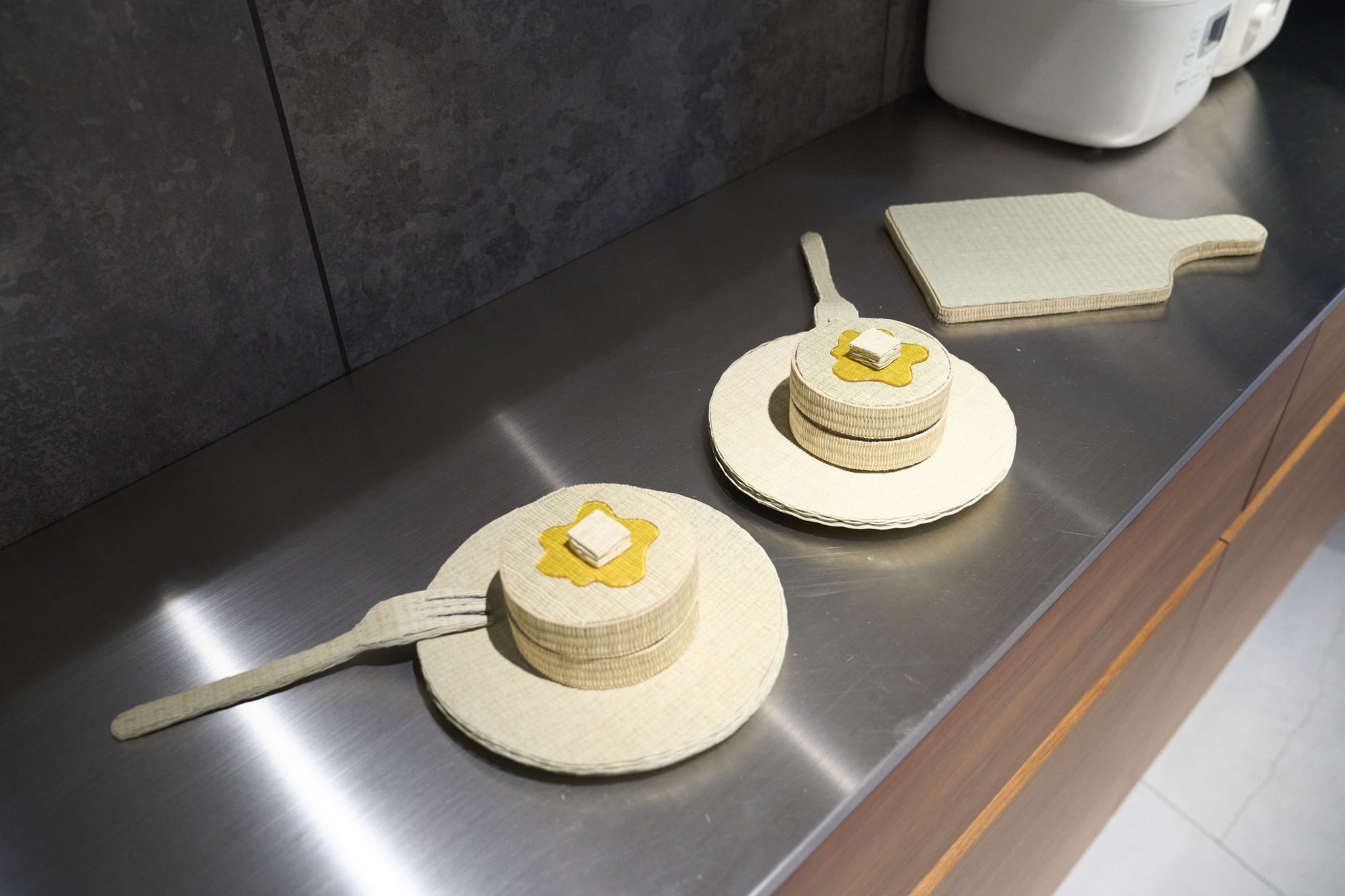 どれも日常生活で見慣れた形状であるが、表面の素材は全て畳で使用されるイグサである。