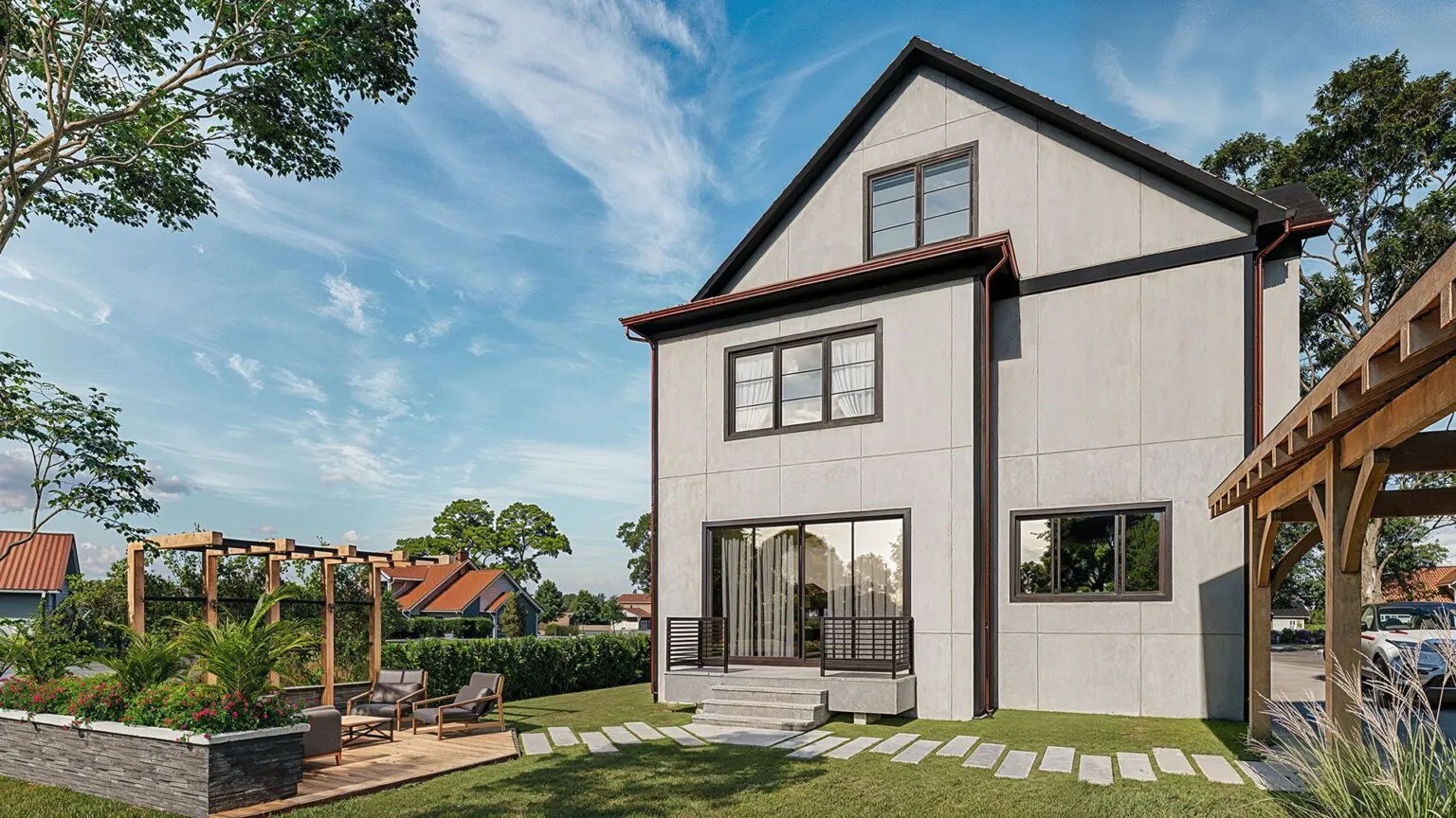For house exterior design, Yantram can produce photorealistic 3D renderings showcasing the home's facade, landscaping, and overall curb appeal. Their backyard designs visualize outdoor living spaces, pools, patios, and landscaping elements.