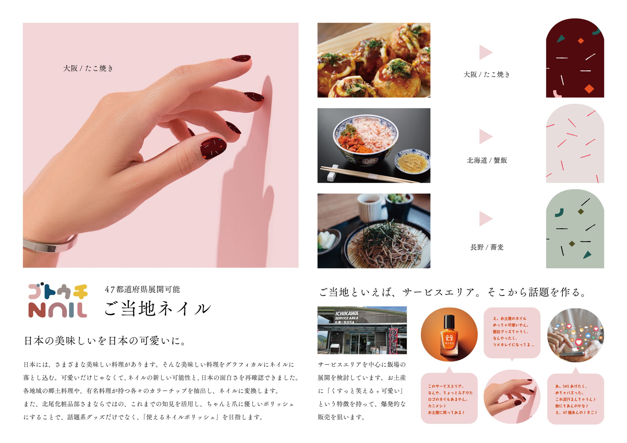 各地域の郷土料理や、有名料理が持つ各々のカラーチップを抽出しネイルに変換。