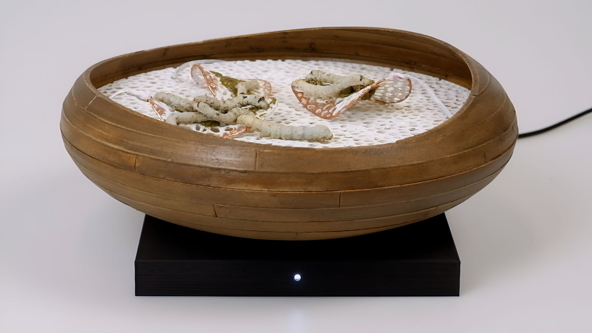 The project Metamorphonic is an exploration of an alternative relationship between humans and silkworms. Yuta Ikeya reflected on how the domestic silk moths (Bombyx mori) have been domesticated and used for our silk production while being regarded as sacred in Japanese sericulture.