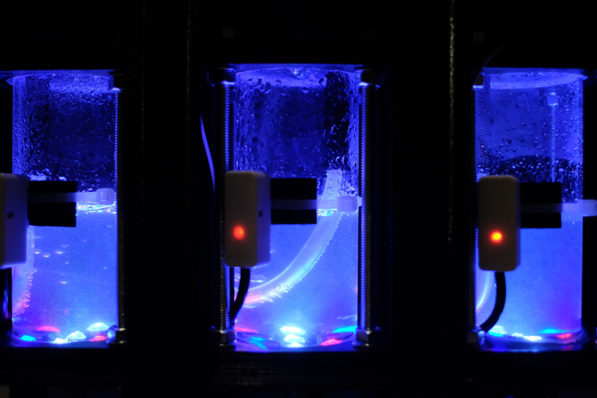 ARC — Algal Relay Computer is a simple form of computer that incorporates the growth of microalgae (Spirulina platensis) in its calculation process. A simple calculation takes a long time because the circuit needs to wait for the algae culture to grow to a certain density. The contrast of the instant technology symbolised by the computer and the slowness reflecting the temporality of microalgae serves as a design provocation to spark discussions about how we can interpret nonhuman temporalities and how designers can incorporate them into design practices.