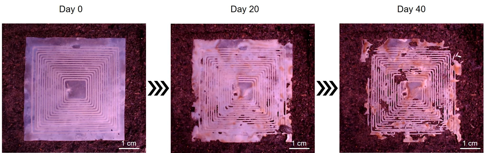 通常、センサをはじめとする電子デバイスは長期的、安定的な動作を念頭に開発されるため、非分解性のプラスチックや銅、銀などの金属材料を主原料としています。そのため既存の電子デバイスは環境中では容易に分解されず、また、リサイクルも容易ではないため、自然のサイクル(エコシステム)から切り離された電子ゴミ(E-Waste)として社会問題となっています。本プロジェクトで提案する「土に還る」センサは既存の電子デバイスとは異なり、「一定期間で確実に分解する」ことを念頭に開発されています。分解後の残留物も土壌成分が中心であり、動植物への影響を最小限に抑えるよう配慮・設計されています。自然のエコシステムと調和した次世代型センサとして、人々にインスピレーションを与えることを目指しています。