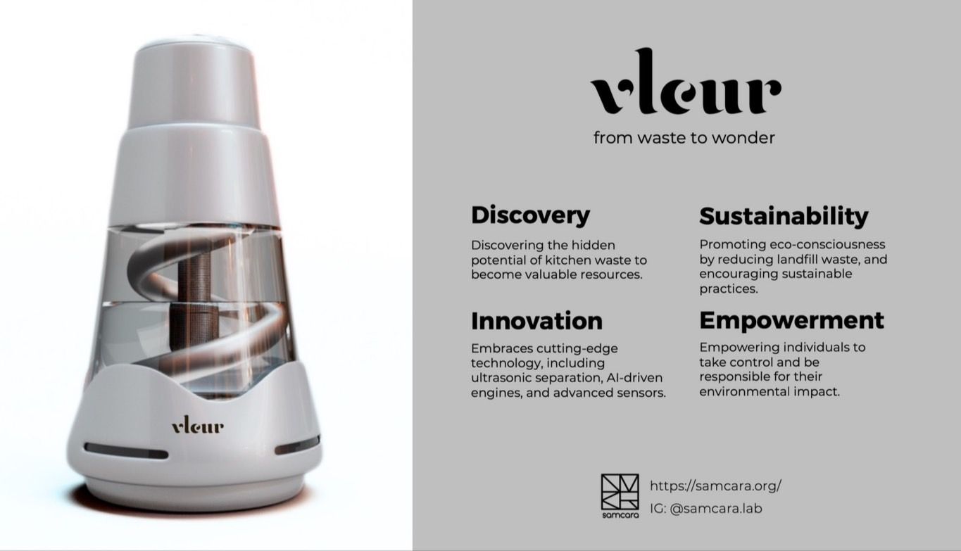 世界中では、生産される食品の 3 分の 1 が廃棄され、その 96% が埋め立て地や焼却処分されていることである。これは温室効果ガスの排出に寄与するだけでなく、世界中の食糧不足を悪化させる。Vleur は、私たちの日常生活にシームレスに統合できる革新的なソリューションを提供することで、これらの差し迫った課題に取り組みたいという思いから生まれた。