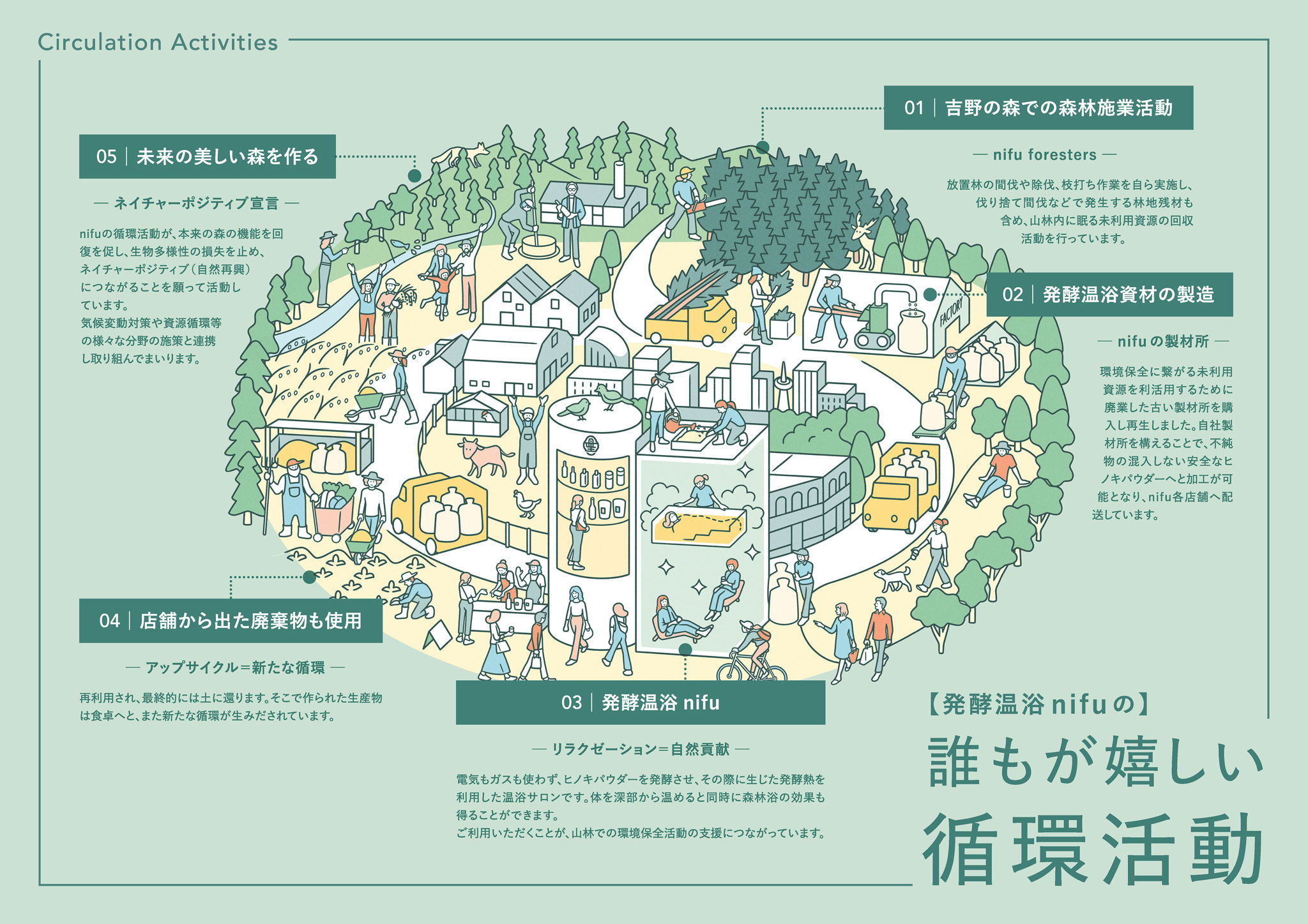 「自身の美と健康のために発酵温浴nifuに入浴することで森林美化活動にも参加することができ、それは地域の活性化にもつながる。」
