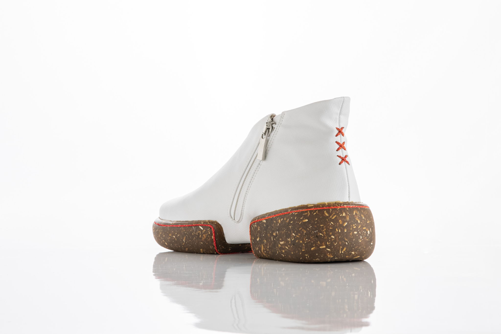 CRIMAGNO's work focuses on leveraging nature's strengths to create sustainable, circular solutions in the footwear industry. We prioritize materials that are naturally renewable, biodegradable, and have a low environmental impact, such as hemp, corn, apple, and coconut fibers, as well as natural rubber. By using these materials, our shoes are designed to be 100% recyclable, ensuring that at the end of their life cycle, they can be reintegrated into the environment without leaving harmful residues.