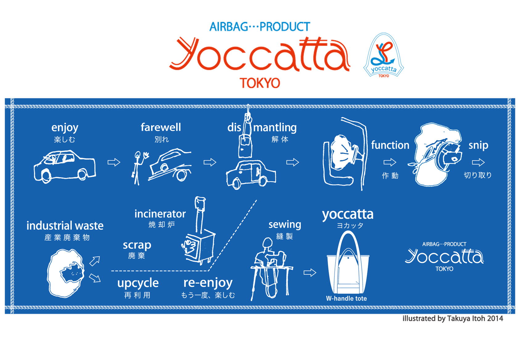 ‘Thank goodness, I’m safe and the airbags remained unused!’‘Thank goodness, we can reuse the airbags!’ Yoccatta means ‘thank goddess’. Thus, yoccatta TOKYO has the meaning of preciousness and gratitude.