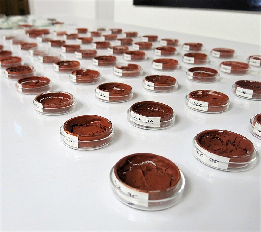 detail with paint samples, part of presentation during Dutch Design Week 2018 BioArt Laboratories Eindhoven