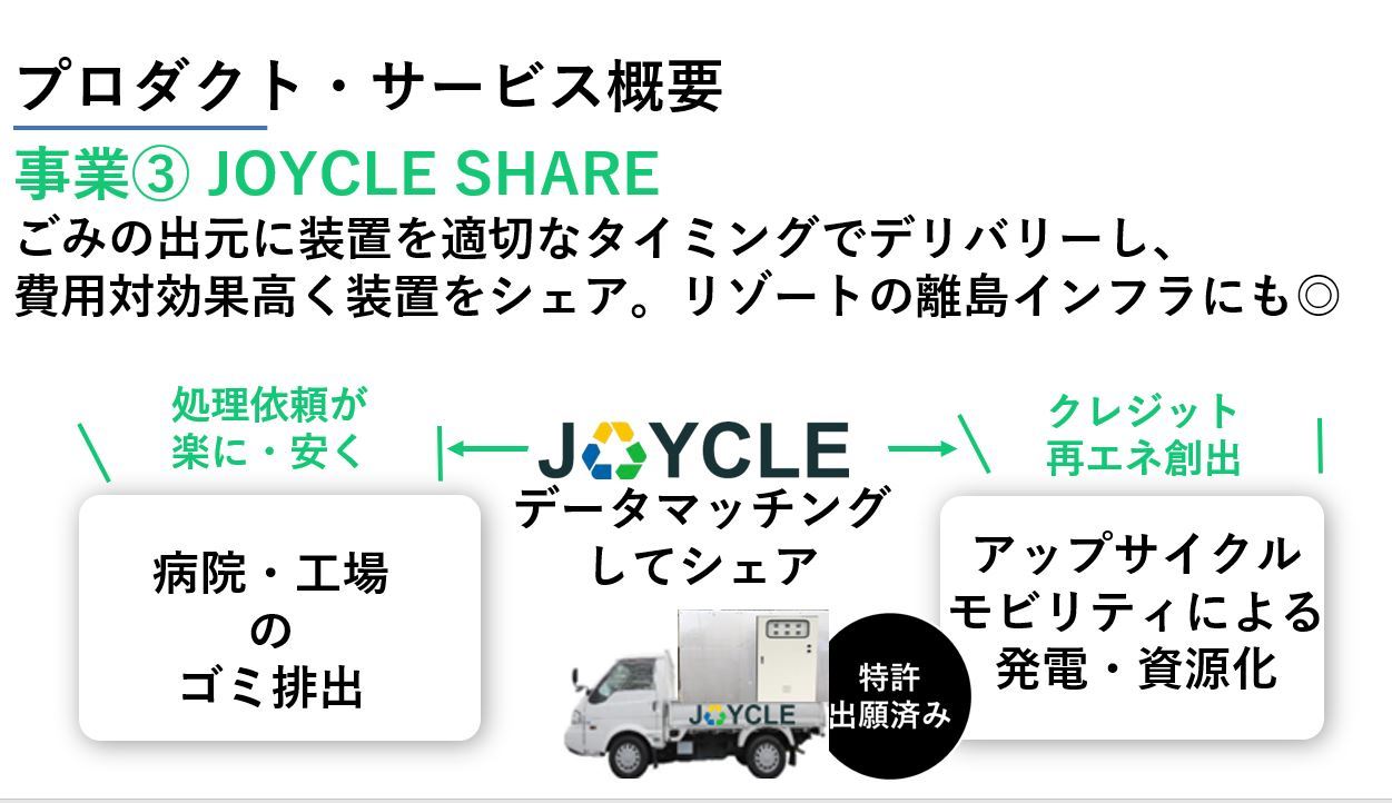 5. 分散型サービスモデルの展開: JOYCLE SHAREという移動式の廃棄物処理ソリューションを提供し、より広範囲な地域でのサービス提供を目指します。