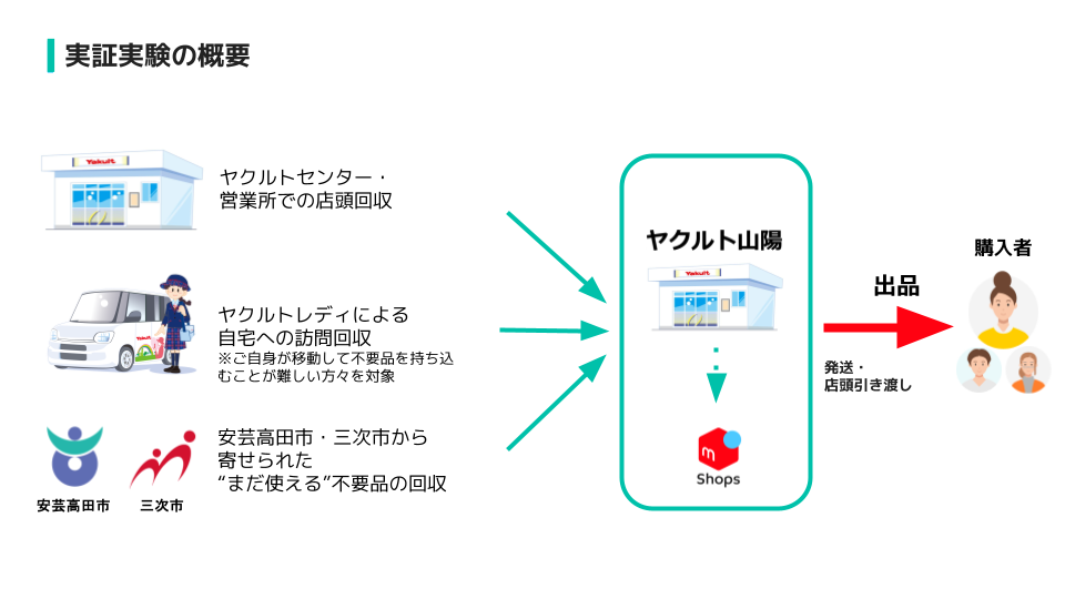 メルカリ・ヤクルト山陽・安芸高田市・三次市による”三方よし”のリユース推進を目指す実証実験 Mercari, Yakult Sanyo, Akitakata City, and Miyoshi City Joint "Three-Way Satisfaction" Reuse Promotion Pilot Project