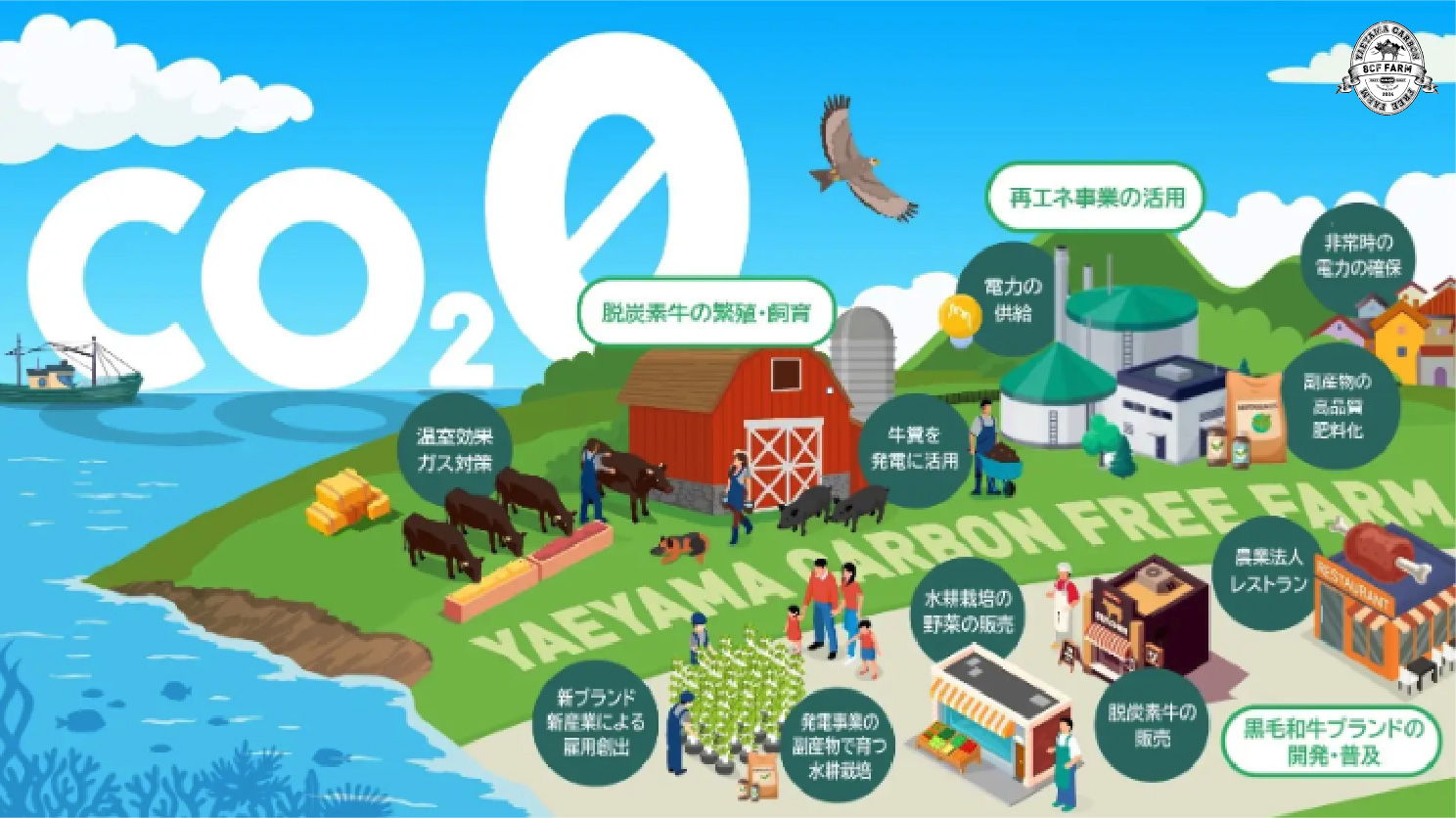 We are establishing a circular economy-based ranch, the “Yaeyama Islands Carbon-Free Farm,” in Ishigaki City, Okinawa, Japan. The first phase of this initiative, the Yaeyama Islands Carbon-Free Farm, will embody a circular (bio) economy, delivering solutions for carbon neutrality and addressing environmental pollution from livestock manure on Ishigaki Island.