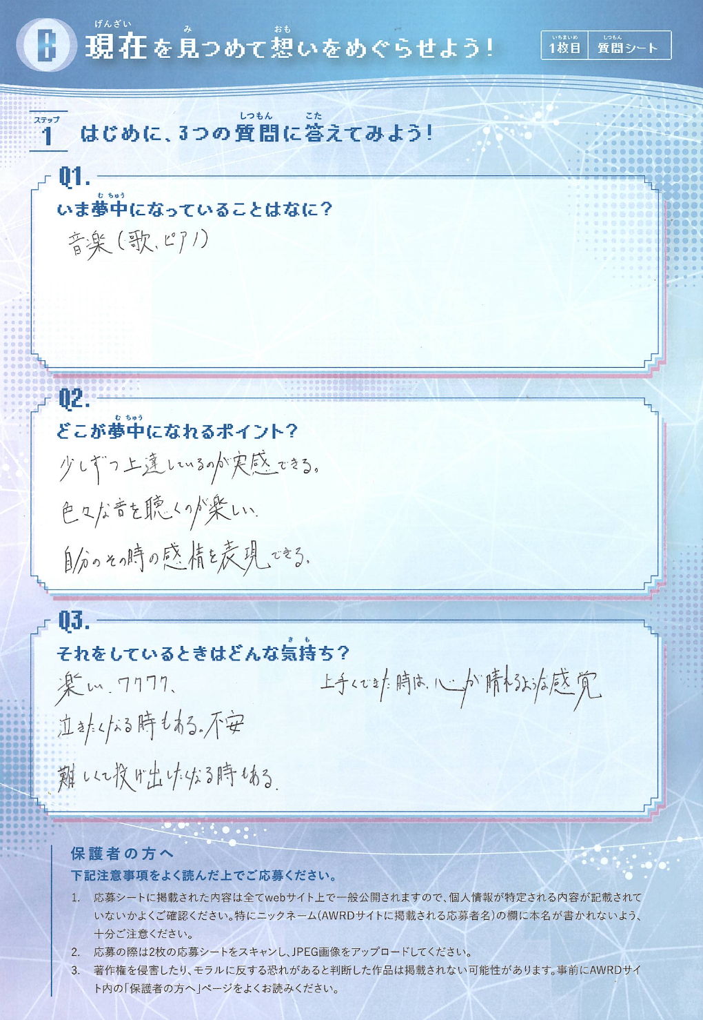 現在Q1:いま夢中になっていることはなに?