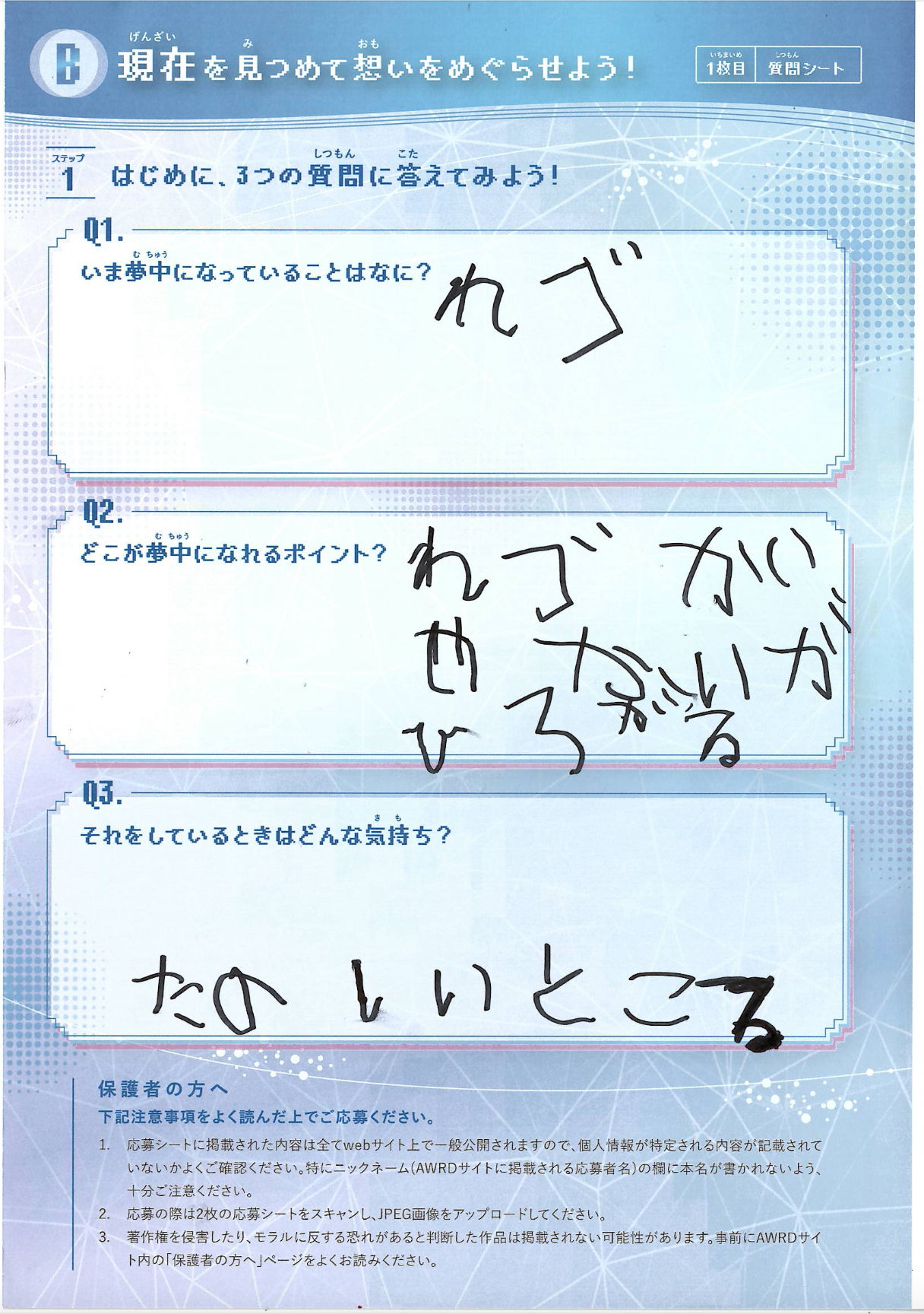 現在Q1:いま夢中になっていることはなに?