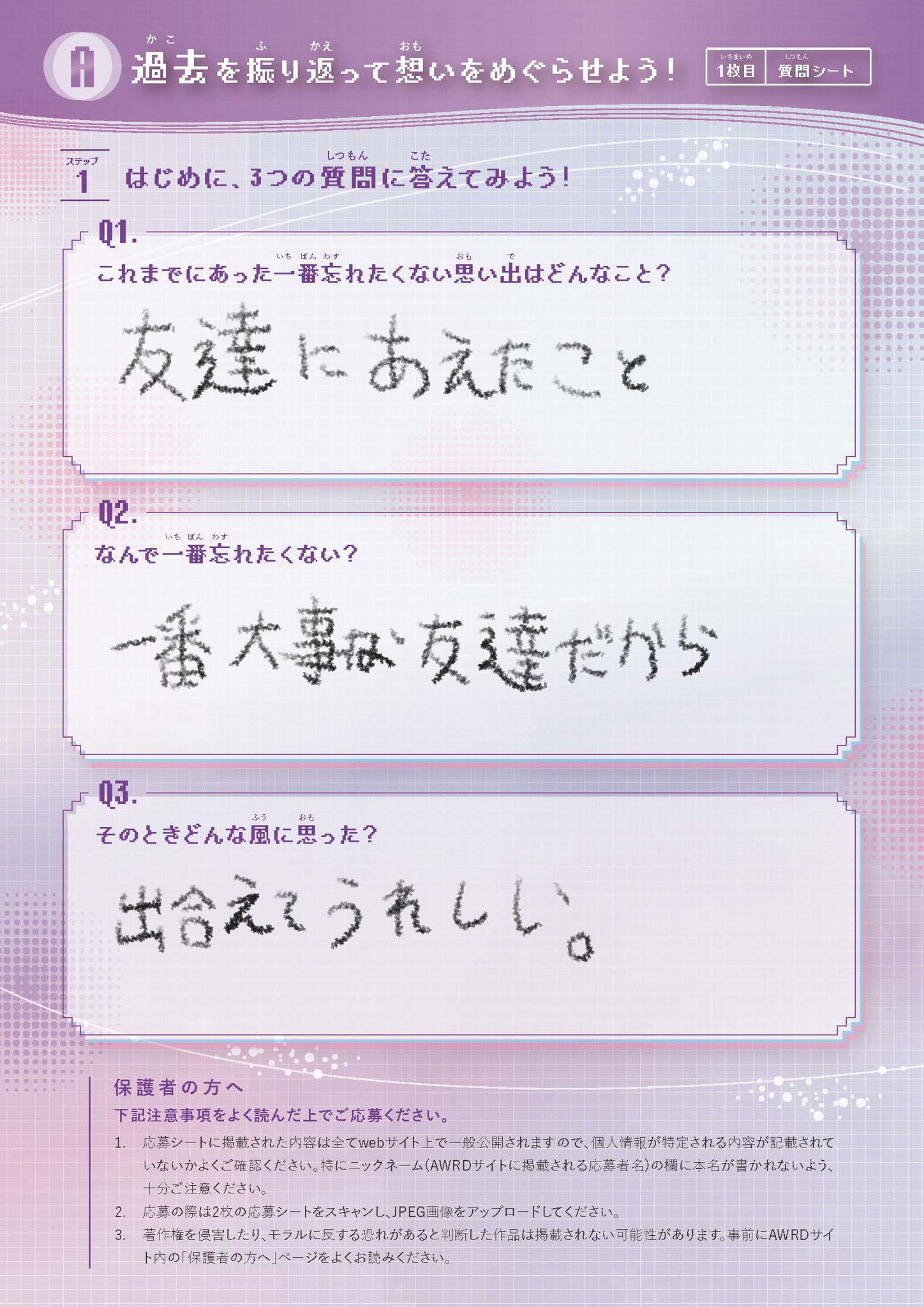 過去Q1:これまでにあった一番忘れたくない思い出はどんなこと?