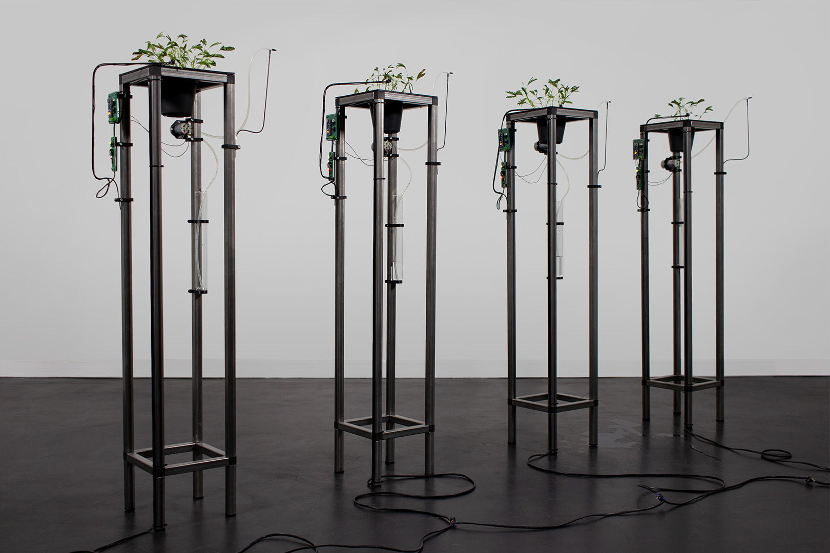 The Symbiotic Transmitter enacts a speculative communication apparatus, based on a hybrid structure of interacting electronics and plants. The formation pursues the transmission of a signal. This is only possible through cooperation and the well-being of all parts.