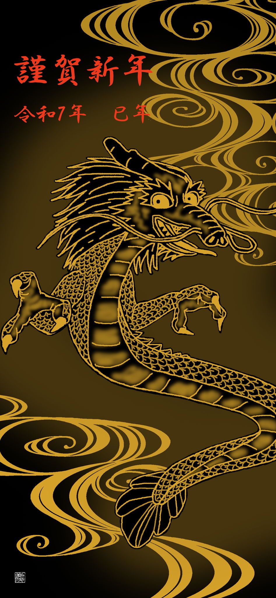 鯉と龍の間の龍の子供、蛟をマウスで描きました。