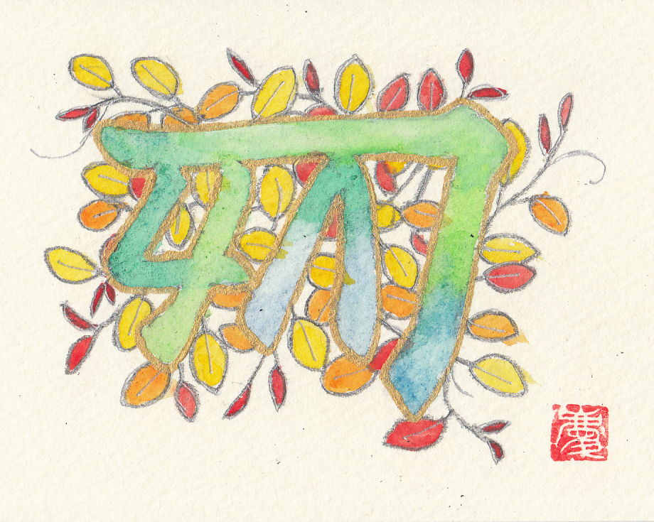 レトロ風なデザインで、お守り文字の龍体文字に蔓性植物を絡めました。