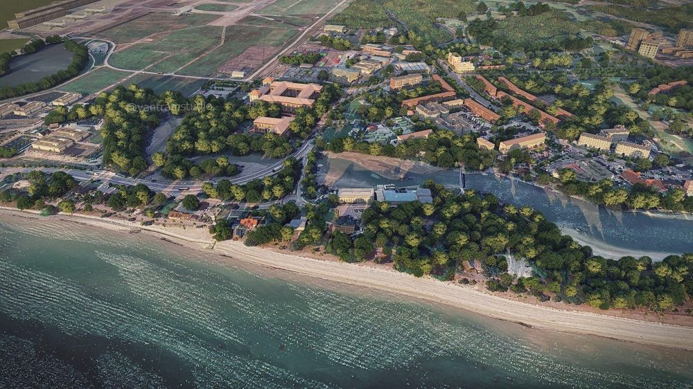 This image exemplifies Yantram Studio's capability in delivering realistic 3D exterior renderings for large-scale projects like convention halls. Our designs highlight impressive facades, elaborate detailing, and surrounding landscapes, providing a comprehensive visual experience. We integrate elements like lush palm trees and modern vehicles to create a dynamic and believable environment. Our services are ideal for showcasing the majesty and functionality of convention centers, attracting potential clients and stakeholders with compelling, high-quality architectural visualizations.