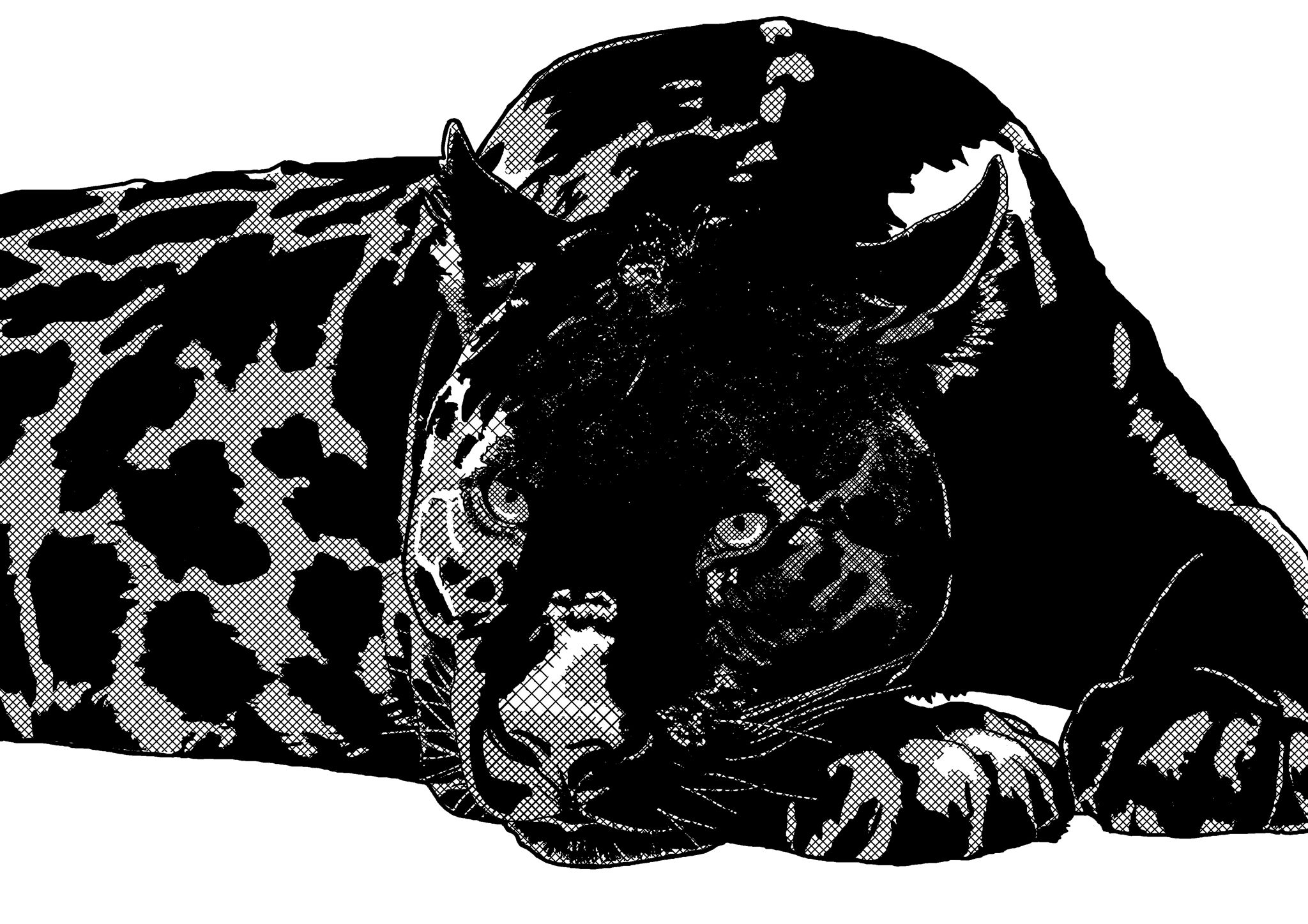 モノクロ二階調化の黒い動物の場合の練習で、模様が残るクロヒョウの場合。