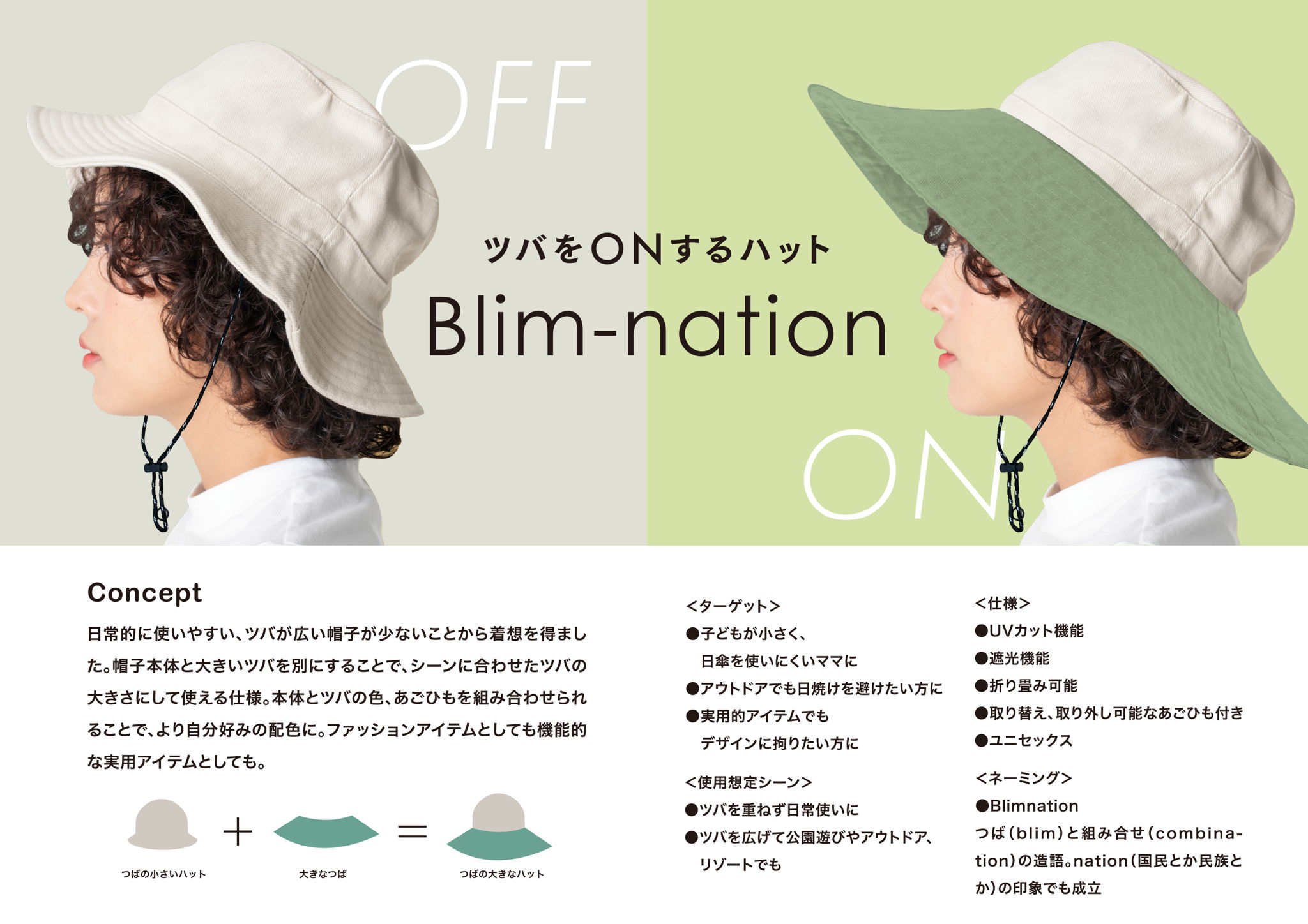 日常的に使いやすい、ツバが広い帽子が少ないことから着想を得ました。帽子本体と大きいツバを別にすることで、シーンに合わせたツバの大きさにして使える仕様。本体とツバの色、あごひもを組み合わせられることで、より自分好みの配色に。ファッションアイテムとしても機能的な実用アイテムとしても。