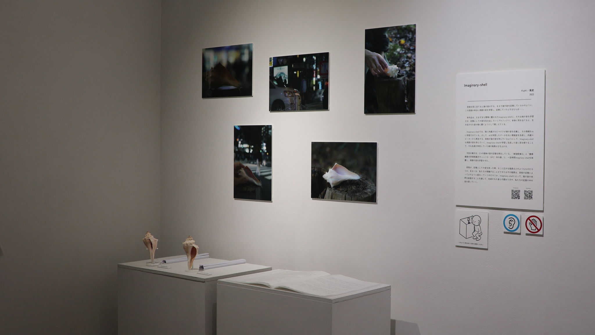 貝殻が、記憶としての音を持った時、そこに広がる風景や私たちが想像することができたはずの風景はどのように変わるのだろうか。Imaginary-shellによって、音の世界を拡張し、生成された音との関わり方や、私たちの記憶の中の音を探っていく取り組みである。