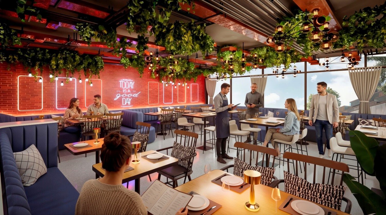 Manchester is rapidly redefining its hospitality and food culture, and interior design plays a crucial role in shaping memorable dining experiences. These visuals showcase a modern café and food court interior concept designed with a focus on comfort, flow, and brand identity—brought to life through photorealistic 3D interior visualization by Yantram Studio.