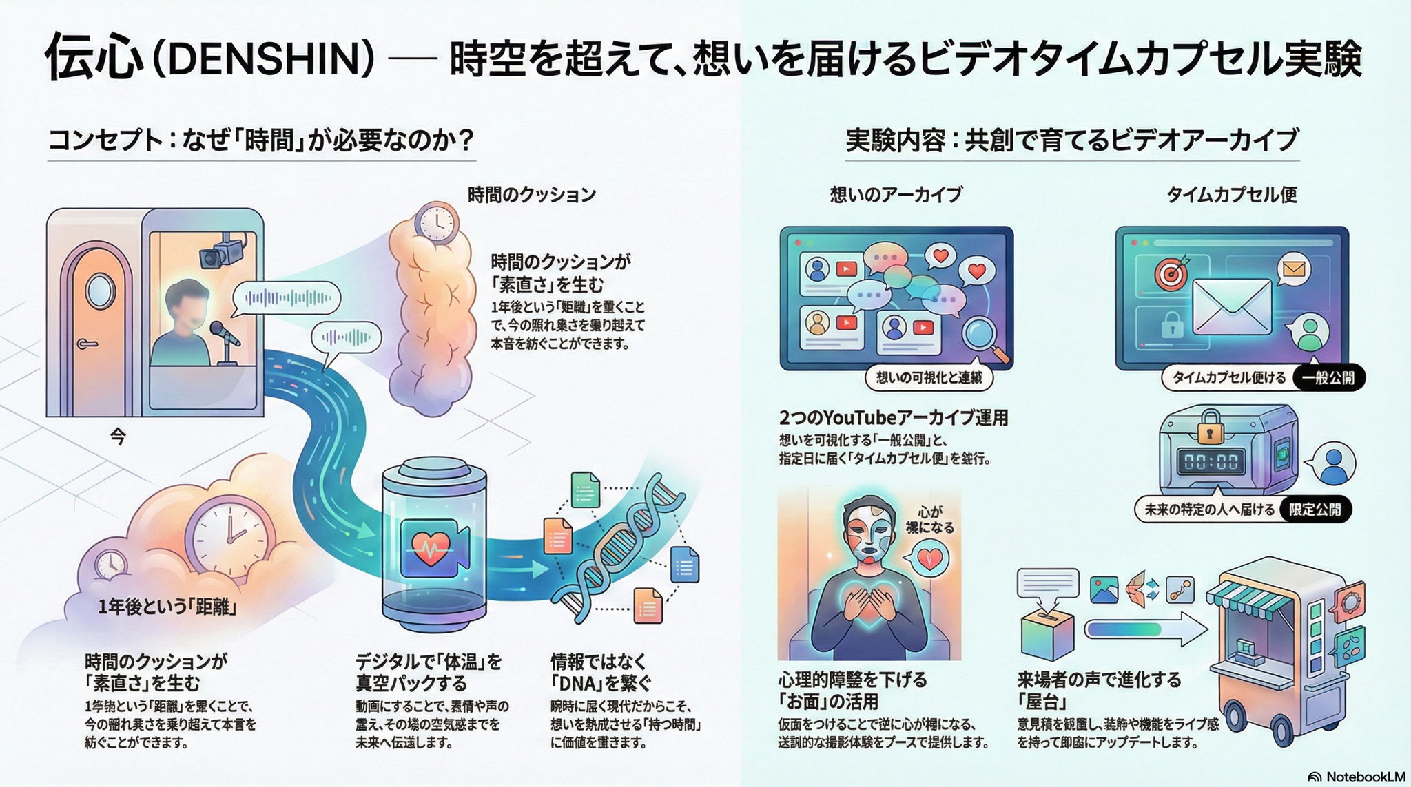 伝心(DENSHIN)― 時空を超えて、愛を叫べ。みんなで育てる「動画タイムカプセル」実験