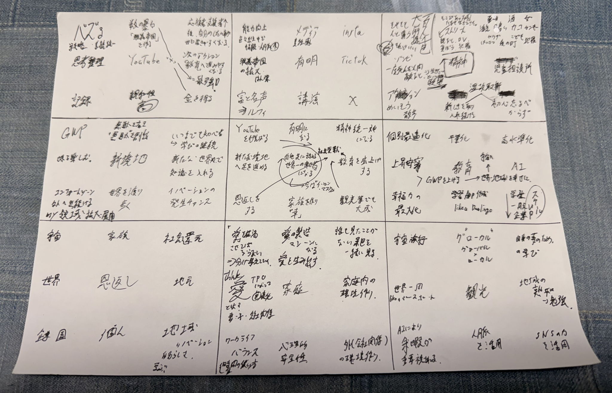 本プロジェクトでは、私が実際に人生の指針として活用している「曼荼羅チャート」を用い、ComoNeという開かれた場所で、来場者が自らの人生目標や散らばった思考を「手書き」で整理・可視化する実験を行います。個人の内面(根っこ)を公共の場に持ち出すことで、どのような自己理解の深化と他者への共感が生まれるかを検証します。