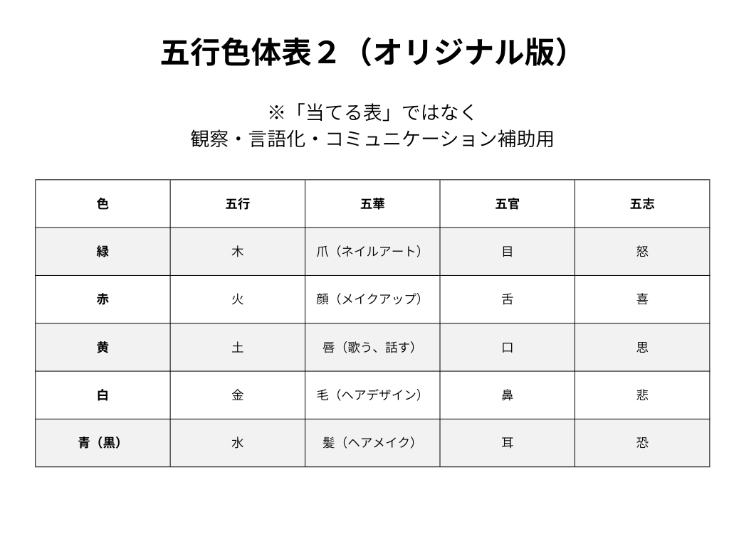 東洋医学における「五色(青・赤・黄・白・黒)」の考え方と、
