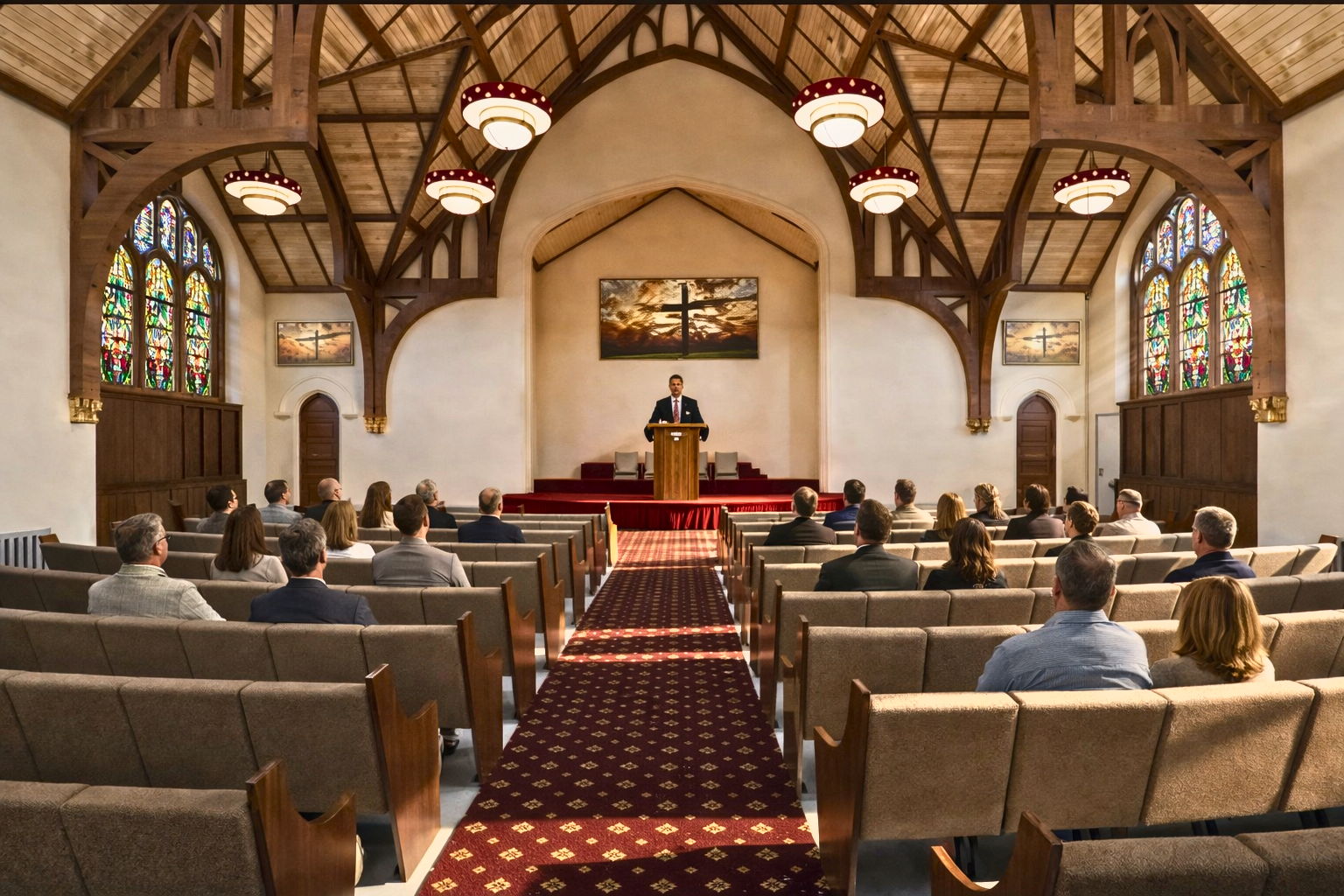 Church and institutional interiors demand accurate lighting simulation, symmetry, and material realism. At Yantam Studio, our Luxury interior visualization approach captures the warmth of timber structures, the reflections of stained glass, the warmth of pendant lighting, and the depth of architecture with technical precision.