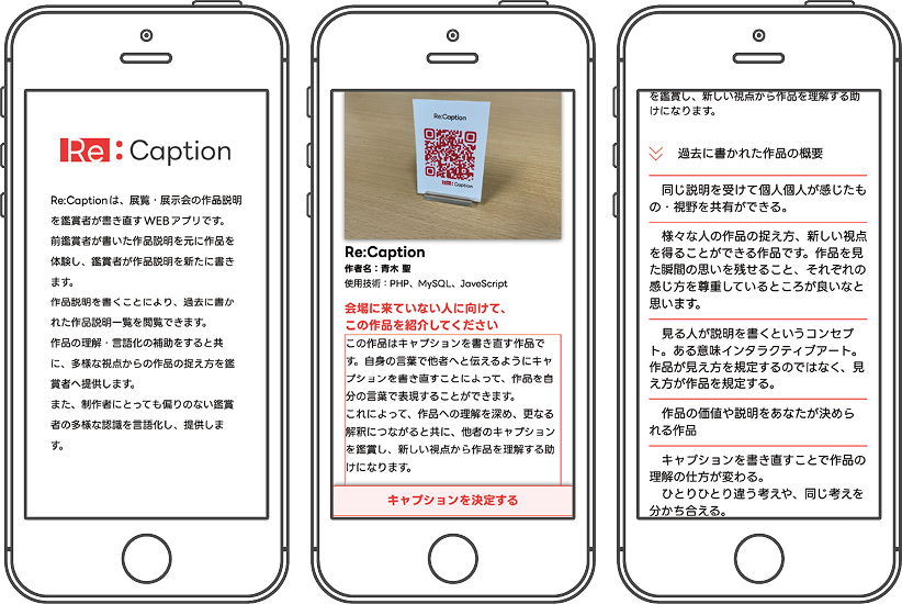 Re:Captionは、展覧・展示会の作品説明を鑑賞者が書き直すWebアプリです。