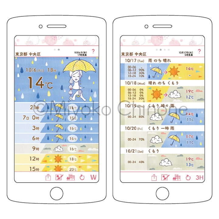 お天気アプリ「かわいい天気予報3」イラスト・デザイン