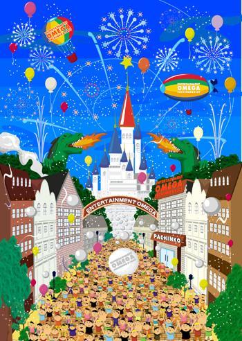 関西を代表する大型パチンコチェーン店「エンターティメントオメガ」のグラフィックデザイン。
