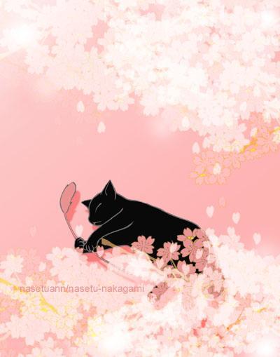 すやすや眠る黒猫と桜。癒しをテーマにしました
